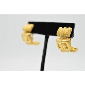 Givenchy Vintage Logo Clip On Earrings GG Brushed Gold Hoop 80s Signed AS IS 9D