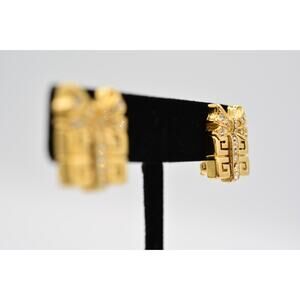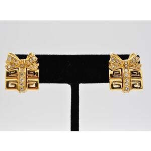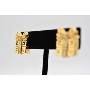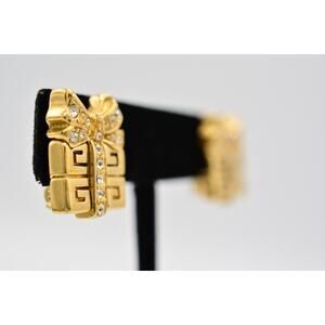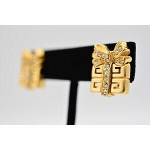 Givenchy Vintage Logo Clip On Earrings Present 4G Gift Box Gold Signed 80s Bin1