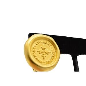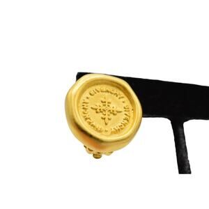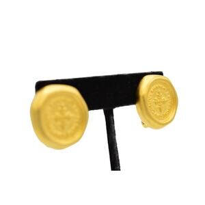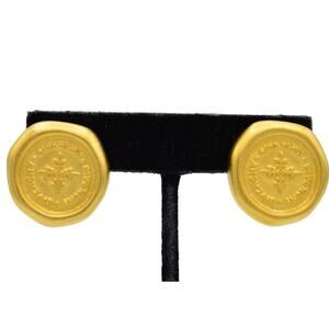 Givenchy Vintage Logo Coin Clip On Earrings Brushed Gold Chunky NOS Signed BinW