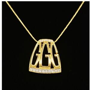 Givenchy Vintage Logo G Pendant Necklace Crystal Gold Signed NOS 80s 1980s BinP
