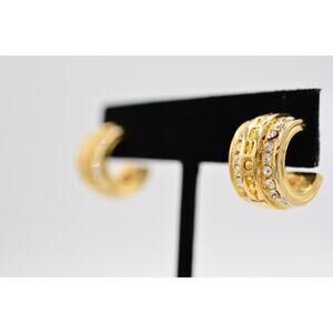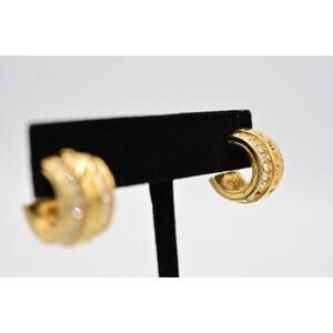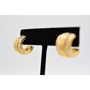 Givenchy Vintage Logo Hoop Earrings Gold Rhinestone Crystal Signed 1980s BinAO