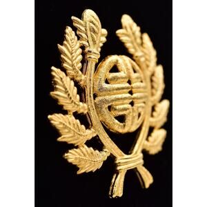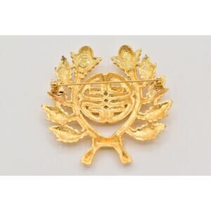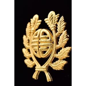 Givenchy Vintage Logo Pin Brooch Brushed Gold 4G Laurel Leaf Chunky Signed BinBA