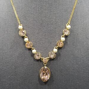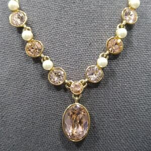 Givenchy Vintage Necklace – Gold Plated Pink Rhinestone & Faux Pearls, 1990s