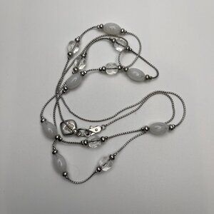 Givenchy Vintage Opera Length Silver Plated Necklace w/ Glass Beads - Preowned