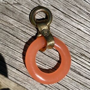 Givenchy Vintage Orange Lucite & Gold-tone Leaf-like Wrap-around Pendant 3.25"