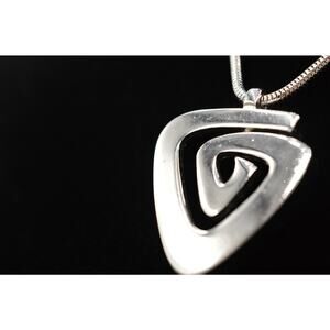Givenchy Vintage Pendant Necklace Silver Abstract Swirl Runway Signed 1970s BinK