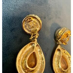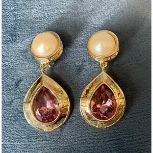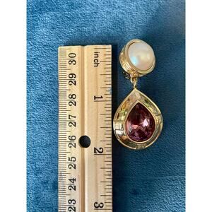 Givenchy Vintage Purple Stone and Pearl Teardrop Earrings Clip On 80s 90s Style