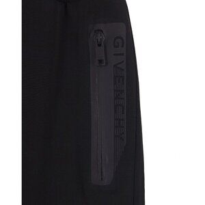 Givenchy wool blend front panel track pants featuring logo zippered front pockets.