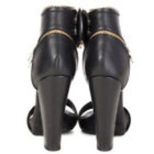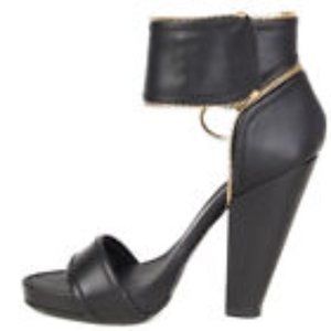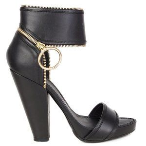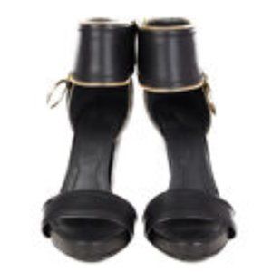 100% authentic Givenchy ankle-strap platform sandals feature a single band at the vamp and elastic double-snap closure at the ankle. Gold-tone metal ring pull and zipper detail at the ankle strap. Have been worn and are in excellent condition. Black rubber sole has been added.