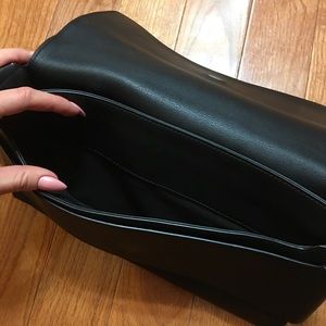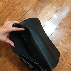 Givenchy clutch made from black leather, black linen inside.
