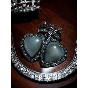 Givenchy double heart hematite CZ ring size 7