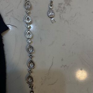 This elegant silver bracelet features sparkling accents, perfect for adding a touch of glamour to any outfit. Ideal for special occasions or everyday wear.