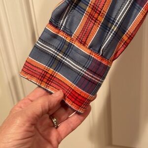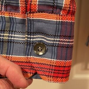 Very nice shirt. It’s blue red orange black white. Some yellow