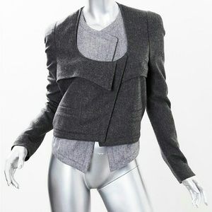 Ultra chic Givenchy layered grey jacket. Wool/cashmere. EUR Size 42. Givenchy label tag fell off shown in last pic. Extra buttons included to replace missing button on inner layer.