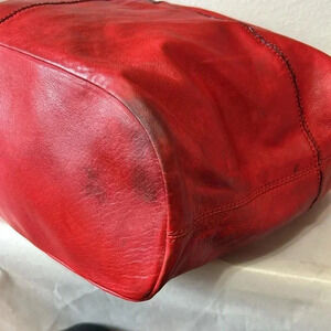 This beautiful bag is preloved, she shows some wear. The outside has some discoloration/ darkening. It adds to the patina of the bag, it looks almost intentional. The inside is super clean, just a few small spots. The shoulder strap is removable if you’d like it as a handbag only. This is a large bag, great for work or school, or even a diaper bag.