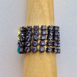 Tanzanite chatons crystals set in hematite plate with Olivine , frost jonquil and aqua square stones
