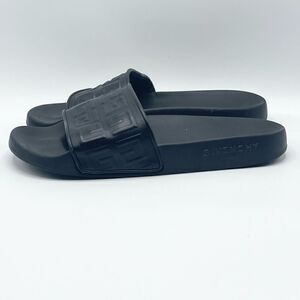 Givenchy "4G" logo-embossed 100% lamb leather upper and rubber sole pool sandals.