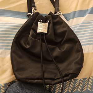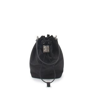 Givenchy 4g light bucket bag in black - black. size all. supple nylon with viscose canvas lining and polished silver-tone hardware. made in italy. top drawstring closure with metal 4g detail. one main compartment. calfskin leather trim. measures approx 7w x 8h x 3.75d. detachable leather top handle with a 5 drop. detachable leather shoulder strap with a 19 drop