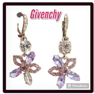 Givenchy Gold tone colored Crystal Flower drop earrings