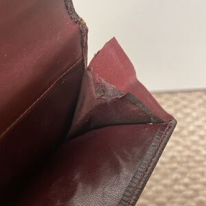 Givenchy Maroon Wallet. Wallet is old and has wear and tear and the lining is not perfect. Genuine leather