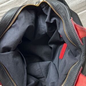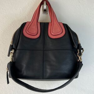 Givenchy Nightingale Handbag Black with Red Handles. Used good condition. 14.5 inches long on the bottom, 20 inches long on the top zipper side, 11.5 inches tall.