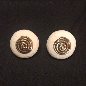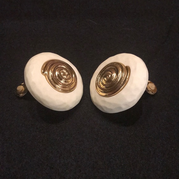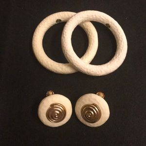 Gorgeous Givenchy Ivory hammered with Gold center clip on earrings. Signature logo on back. See photo. Two matching Bangle Bracelets🛑SOLD🛑at the Boutique. Unique &🤩Classic🤩