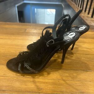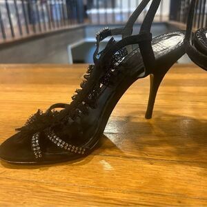 Givenchy Suede Leather Lace Stiletto Sandals Pump with Rhinestones