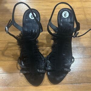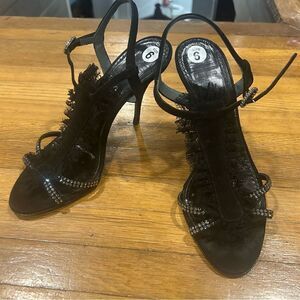 Givenchy Suede Leather Lace Stiletto Sandals Pump with Rhinestones