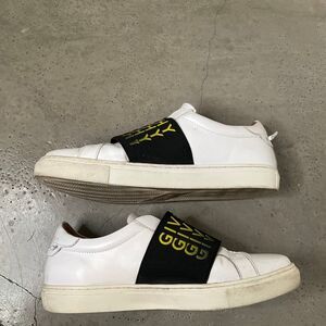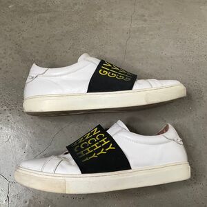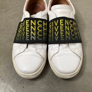 These are slip-on sneakers with a wide elastic band across the top featuring the Givenchy logo.