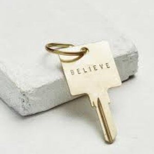 Hand-stamped Gold or Matte Black key measuring 2 2/5" long x 1 1/3" wide