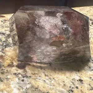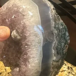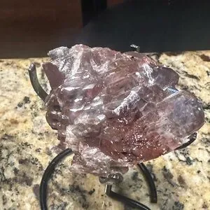 Freeforms-chocolate calcite, garden quartz, amethyst on a stand