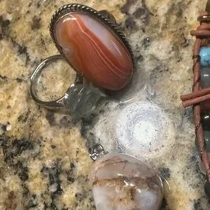 Rings-rabbit hair, carnelian, fluorite, green chlorite, zebra jasper