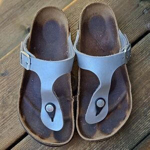 Gizeh style thong shoe slip on Birko Flor Ice Pearl color Onyx approximate size 6 6.5 womens