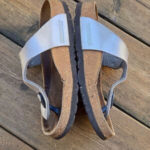 Gizeh Birko Flor Ice Pearl Onyx Silver Tone Leather Sandals Womens Girls 6.5 App