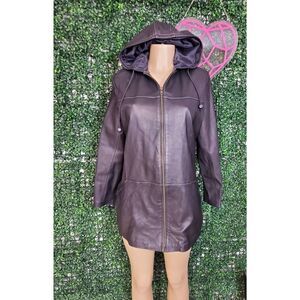 100% leather outer polyester lining. Pit to pit 19 sleeve 20