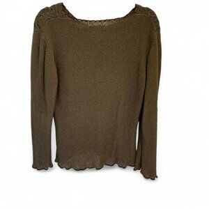 Gizel Olive Green and Brown Knit Flowy Sweater with Ruffle Hem size Large/XL