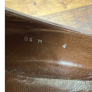 Vintage narrow / pointed toe flats. Italian made. Leather construction with a rubber sole. Women's size 8 1/2. These show light tread wear. The left shoe has some scuffing and indentations to the caramel color leather as shown in close-up's. These will be well wrapped and mailed in a polybag to save the buyer on shipping costs.