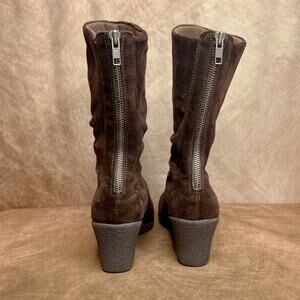 Glacee Calf High Suede Leather Wedge Heel Slouch Boots Brown Zip Up Indie Sleaze