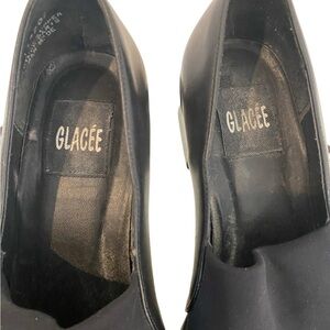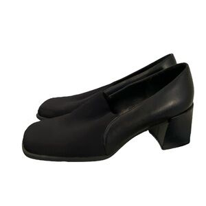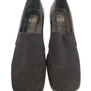 Glacee Vintage Leather Stretch Top Black Oxford Chunky Heels Size 7.5 90s Y2k