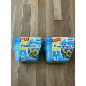 New Glad Freezerware Total of 8 Small Containers S With Lids BPA Free Freezer Ware 2 Packs with Four in Each.