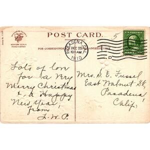 Postmarked Pasadena California Dec 25, 1910
