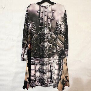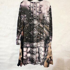 Thank you for checking out this scoop-neck cotton skater dress — a bold Conceptual Subculture design channeling Joan of Arc, knight-in-shining-armor energy, and renaissance rebellion. Perfect for cosplay, festivals, or day-to-day power dressing.