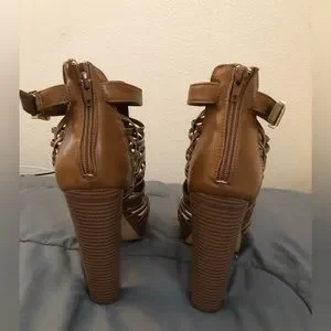Has very little scratches underneath. Rarely worn. Medium brown heels. Size 8.5. Comes in original shoe box