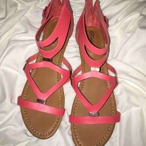 Pink gladiator sandals! Brand new! Bought them but they ended up being too big! Make an offer! Super cute!
