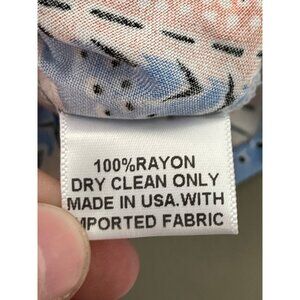 This lightweight romper features a chevron design in soft peach and blue hues, offering a stylish yet comfortable choice. Made from 100% rayon for breathability and elegance.