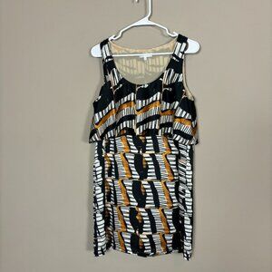 Glam Black, White, and Orange Abstract Print Dress - Size M