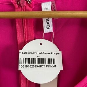 Glam Boutique Style Women’s Hot Pink Lots of Love Half-Sleeve Romper Zip Shorts