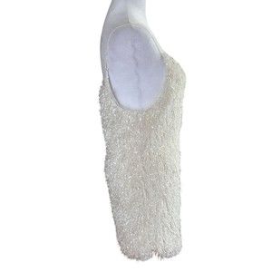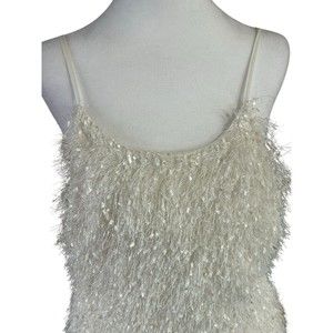 Fringe benefits! Embrace your playful side with the Glam By Glamorous Fringed Mini Dress, a perfect blend of modern style and timeless elegance. Designed with a chic scoop neck and spicy spaghetti straps, this sleeveless dress in a creamy hue offers a flattering fit for your wardrobe. The fringed accents add a touch of whimsy, making it an ideal choice for any occasion that calls for a dash of fun and flair.