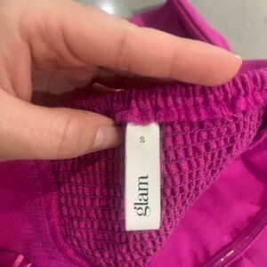 Chic fuchsia top with ruched detailing. Ideal for a standout look.