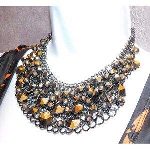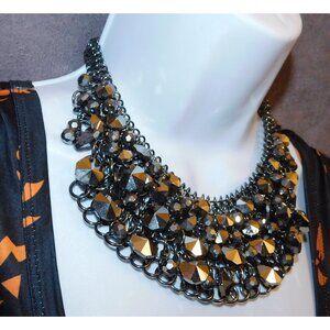 Glam Goth Sparkly Gemmed Bib Statement Necklace